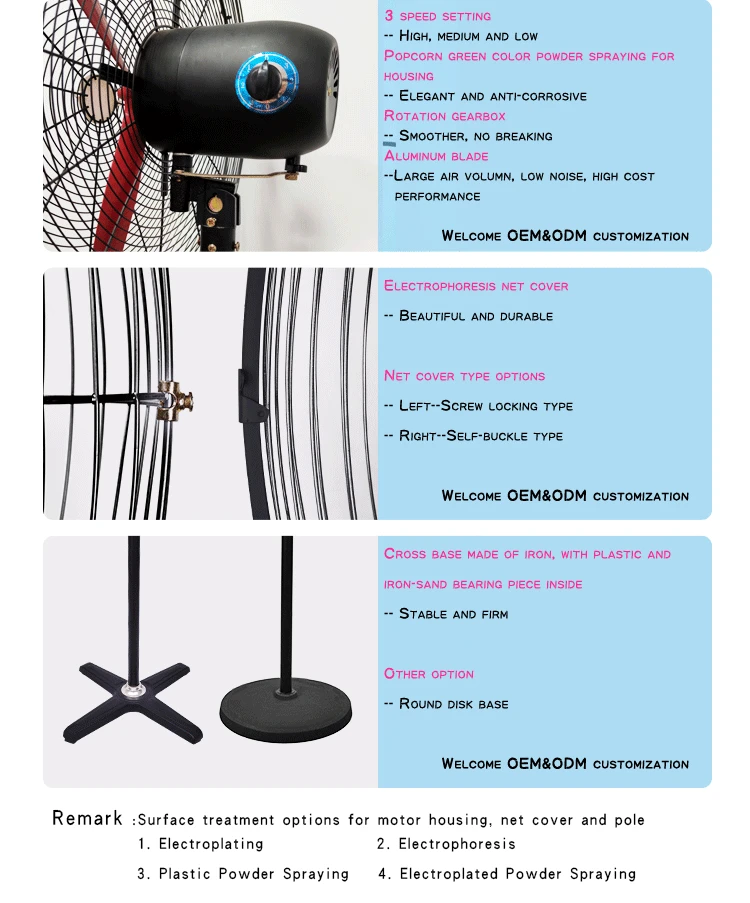 Factory/Workshop Large Electric Floor Fans: 20/25/30-inch big industrial pedestal standing fans. Deliver strong airflow for large spaces, ideal for cooling & ventilating busy factory/workshop environments.